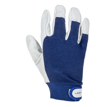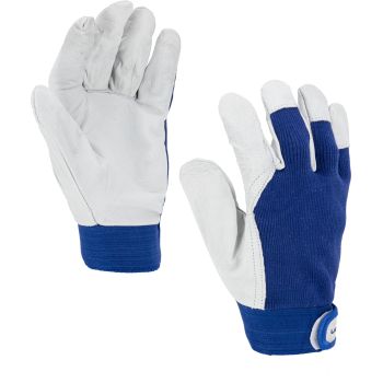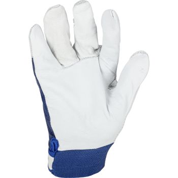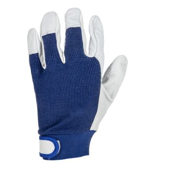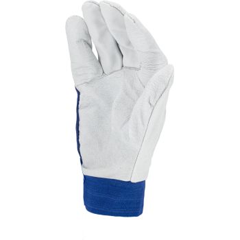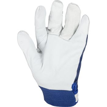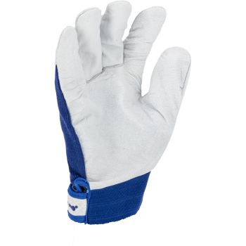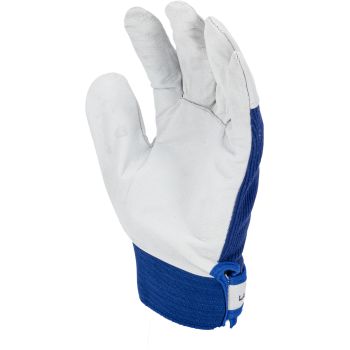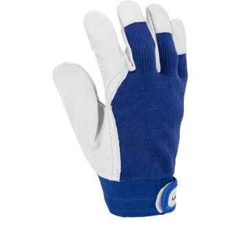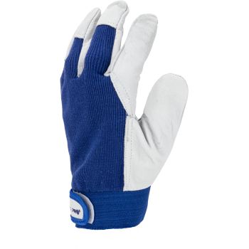- Porţiune integrală a palmei executată dintr-o singură bucată de piele. Manșetă elastică ajustabilă cu fixare prin arici.